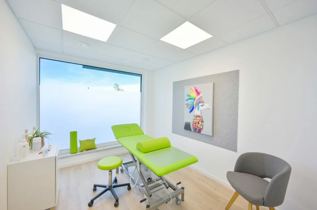 Fläche: 120 m² – 2 Behandlungsräume, Wartebereich mit Anmeldung, Spielezimmer/Lager, Küche/Aufenthaltsraum, behindertengerechte Toilette